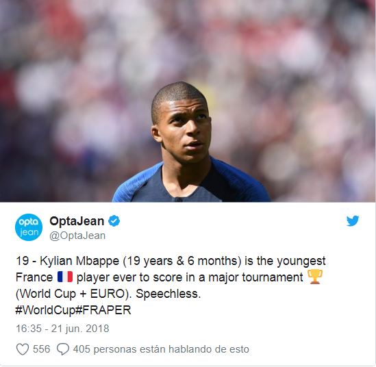 At 19 years and six months, Mbappe is now the youngest player ever to score for France at a finals, including both World Cup and European Championship competition.